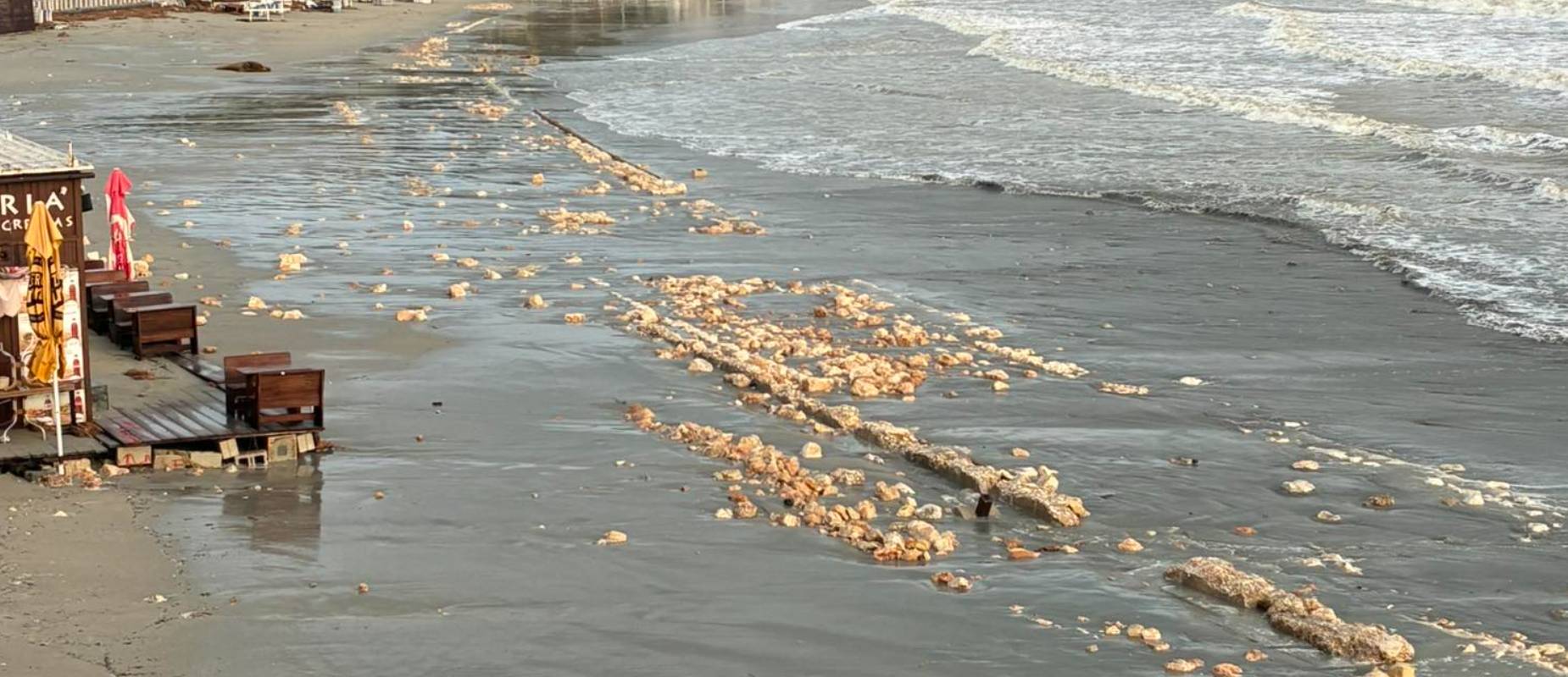 The exposed remains appear to match a former road alignment visible in aerial photographs taken on 18 August 1957.